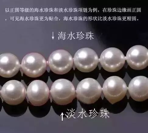 海水珍珠大多为正圆形,其光泽比较亮丽,有较好的保健功效。而淡水珠多为不规则形状,光泽相对比海水珠较弱些,易保养,装饰作用强。